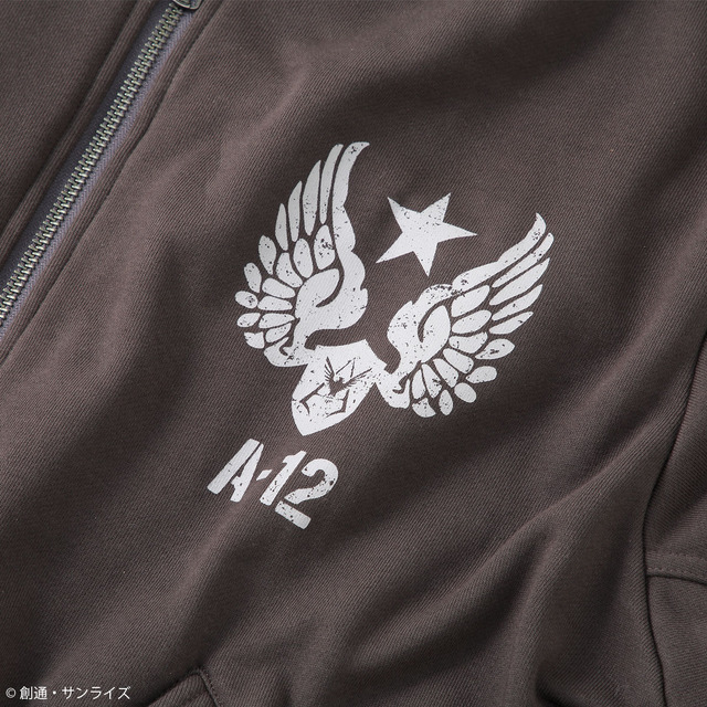 「STRICT-G.ARMS『機動戦士ガンダム』カットMA-1」は、しっかりしたウェイトの裏毛素材を使用。フロント左胸と右袖の肩口にワンポイントプリントをあしらい、左袖にはジッパー付きのシガレットポケットを配置した。