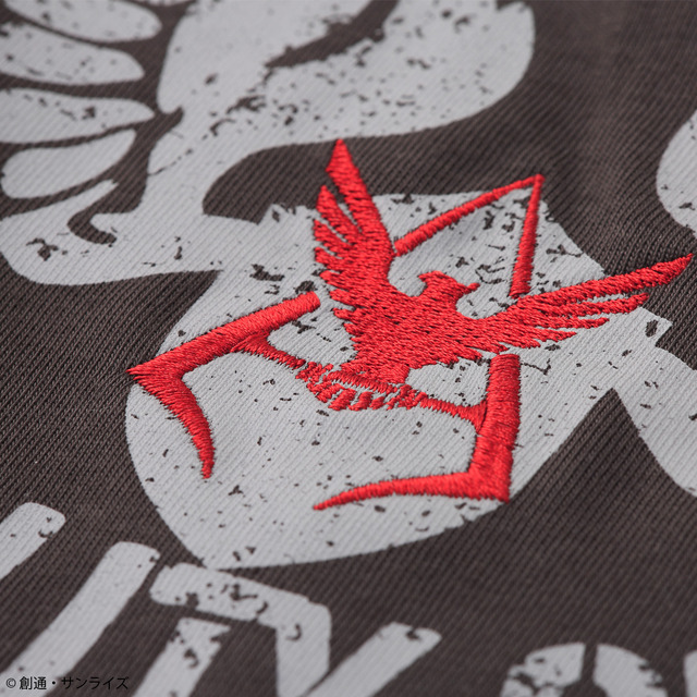 「STRICT-G.ARMS『機動戦士ガンダム』Tシャツ」は、ヘビーウェイトの天竺を用いた。フロントはシンプルに左胸にワンポイントプリント、バックにプリントと刺繍を組み合わせたデザインを大胆に施した。