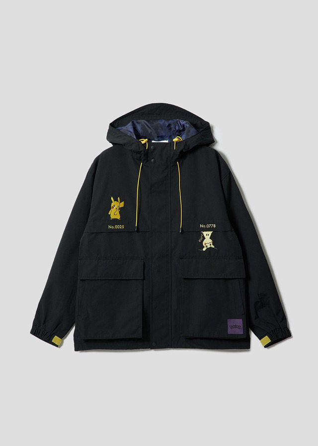 フロントは天地逆さにデザインしたピカチュウとミミッキュを、バックにはピカチュウとミミッキュの並んだ姿を刺繍。さらに内側ではゲンガーやムウマ、ジュペッタなどゴーストタイプのポケモン9種のパターン柄が楽しめるマウンテンパーカー型のアウター。