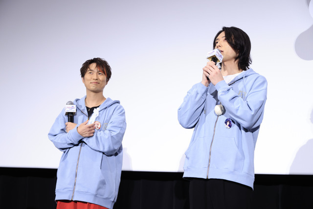 ここで、舞台挨拶の当日が小野の誕生日だと明かされると、小野が「ありがとうございます!」と満面の笑顔を見せる。会場・ライブビューイングの観客から思い思いに声をかける時間が設けられると、「賢章さん、お誕生日おめでとう!」と声が揃い、場内は温かな祝福ムードに包まれた。