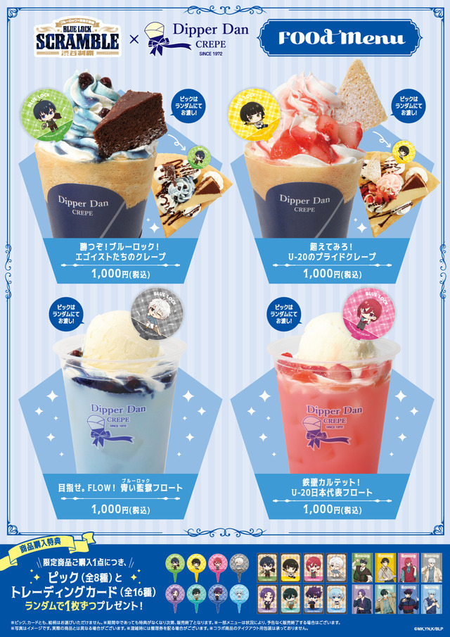 さらに渋谷BEAM1Fの「ディッパーダン」、東急プラザ渋谷5Fの「Pepper PARLOR」では、本イベントのコラボメニューが販売される。コラボメニューを1品注文ごとに、「イラストカード」を全16種からランダムでもらえるのも見逃せない。ディッパーダンでは、コラボメニューを1品注文ごとに「フードピック」も全8種から追加でプレゼントされる。
