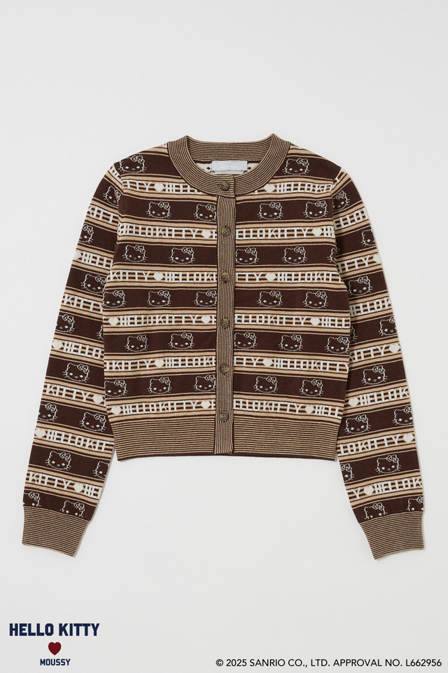 ハローキティとMOUSSYの2度目のコラボ。今回はAWシーズンに合わせ、ハンドニットのような編み地で表現されたキティがかわいいセーター「HELLO KITTY CHUNKY SWEATER」と、キティをボーダーに組み合わせたオリジナル柄のカーディガン「HELLO KITTY RETRO STRIPE CD」、さらに同柄のストール「HELLO KITTY RETRO STRIPE STOLE」の3アイテムを発売する。