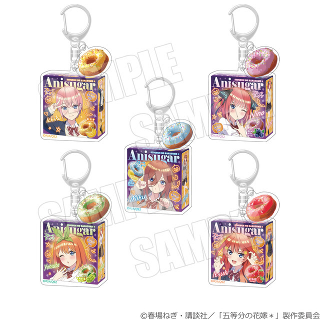 描き下ろしイラストでは、女優の余裕を見せる一花、小悪魔的なウインクをする二乃、恥じらいを隠しきれない「にゃんにゃんポーズ」の三玖、元気いっぱいのウインクがまぶしい四葉、「お菓子くれなきゃイタズラするぞ!」を全力で体現する五月と各キャラクターの性格を表し、撮影中の五つ子の「もう一つの表情」を別バーションで用意している。