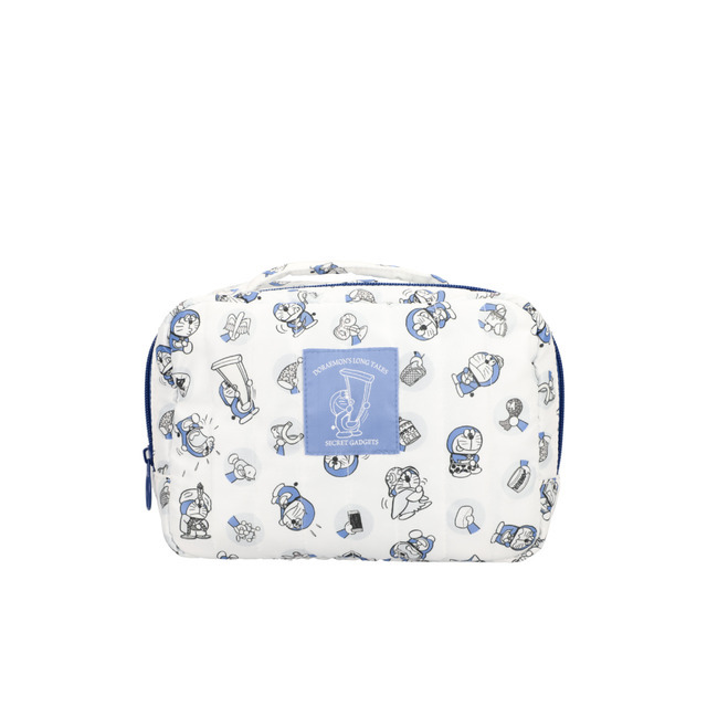 また、「ドラえもん未来デパート」のオリジナル商品である「ニットジャカードポーチショルダーバッグ ドラ文字アルファベット」の先行販売も行われる。ホワイト地にドラ文字があしらわれたシンプルなデザインで、お気に入りのチャームやワッペンなど自分好みにカスタマイズが可能な代物となる。ショルダー紐を外して、バッグインバッグとしても活用できる。