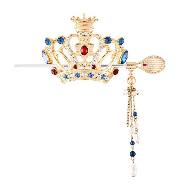 「青春学園中等部モデル」は赤・白・青のラインストーンを基調として、校章をイメージした赤い石が中央に配置されている。爽やかさと気高さが共存する、青学らしい王冠デザインだ。