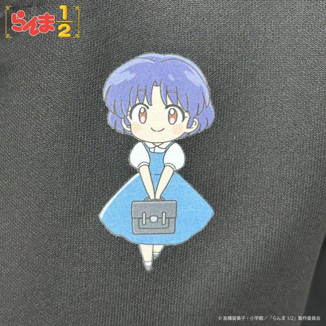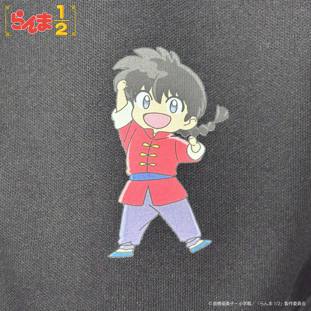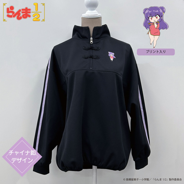 「トラックジャケット」はカンフー着を彷彿させるもので、首もとのジップ部分にチャイナ釦があしらわれた凝ったデザインだ。胸元にはアクセントとして、早乙女乱馬、天道あかね、シャンプー、響良牙たちのプリントが入る。