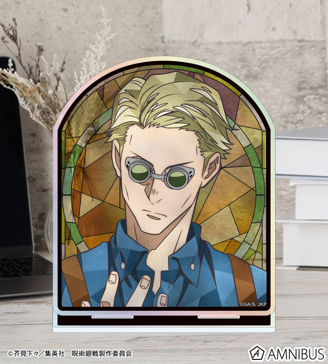 このたびのグッズはそんな本作より、虎杖悠仁、伏黒恵、釘崎野薔薇、禪院真希、狗巻棘、パンダ、東堂葵、七海建人、五条悟、夏油傑、真人、脹相、宿儺たちが新たなタッチで魅力的に表現された「Aure Glass」イラストを用いたもの。「Aure Glass」は、アール・ヌーヴォーの繊細なデザインとステンドグラスの華やかさを融合させたキャラクターイラストシリーズだ。