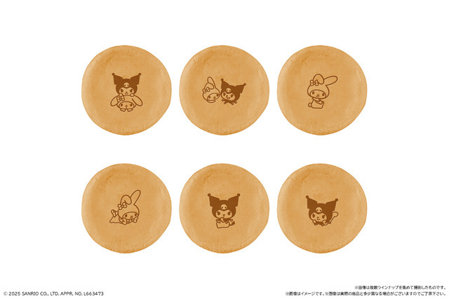 今回販売されるのは直径65mmの今川焼きにオリジナルの焼き印を施したチルドスイーツ。生地の中にはチョコレートクリームが入っている。焼き印は全部で6種類。マイメロディとクロミのそれぞれが描かれたものや、2人が一緒に並んでいる絵柄も用意された。