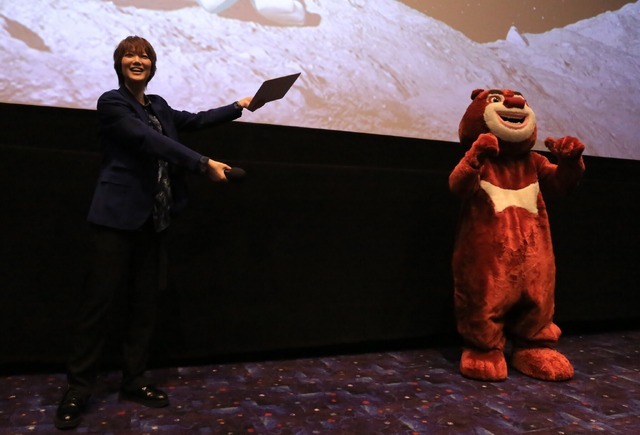 上映後には、日本語吹替版で宇宙生物アブ役を務めた七海ひろきがくまじろう、くまたろうとともに登壇。MCからの質問に答える中で映画の見どころが紹介されたほか、クイズ大会やじゃんけん大会などでも大変盛り上がり、会場全体が明るい雰囲気に包まれた。