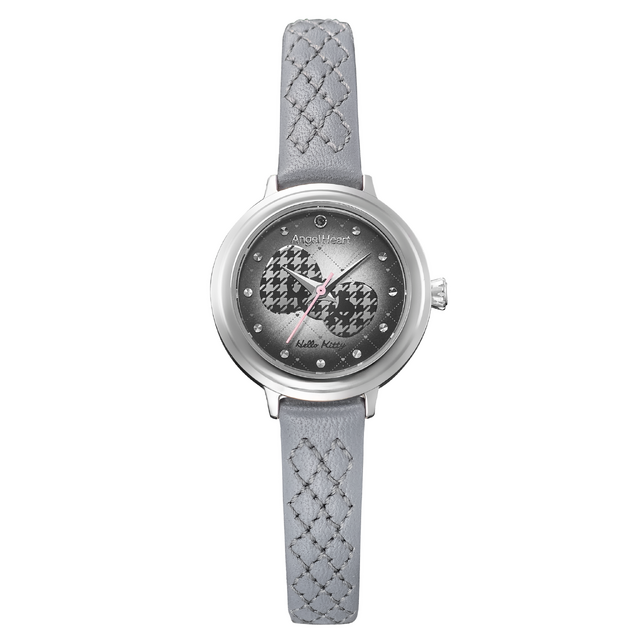 そんなハローキティと、時計ブランド「Angel Heart」のコラボレーションウォッチ第2弾が登場。文字盤の中央に大人かわいい千鳥格子柄のリボンが配置されている。インデックスにはクリスタルを施し、秒針にはベビーピンクカラーを採用。上品さとかわいらしさを兼ねそろえ、全年代が着用できるデザインのコラボウォッチとなった。