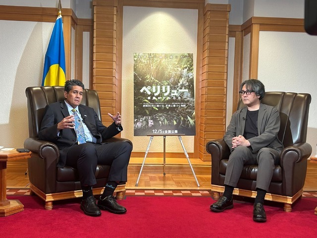 アニメ映画『ペリリュー -楽園のゲルニカ-』が終戦80年の節目である今年、2025年12月5日より全国公開される。5月29日、そんな本作の舞台であるペリリュー島が所在するパラオから、スランゲル・S・ウィップスJr.大統領が来日した。その際、原作者であり映画の脚本も手掛ける武田一義との対談が実現。戦前から続く日本とパラオの深い関係、そして未来に向けた話を、作品を通じて話し合った。