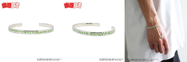 「忌み子飛影ネックレス」は、呪符の立体感と母親の氷泪石を天然石のブルートパーズで表現。「闘神雷禅リング」は表面に顔の模様、内面に雷禅の言葉「あー‥ハラへったな」を刻印し、人間を食さない心の誓いを表している。