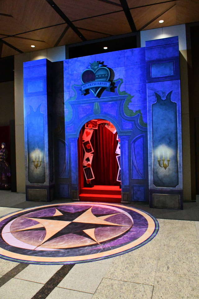 イベント会場に足を踏み入れると、ディズニーアニメーション映画『ふしぎの国のアリス』からインスパイアされた<ハーツラビュル寮>へと繋がる作中に登場する鏡舎をイメージしたユニークなデザインのゲートが目の前に。ゲートの先には、赤い薔薇が咲き乱れる庭、真っ白なクロスがかけられたテーブルがずらりと並び、キャラクターたちがゲストを出迎える、まさにシーズン1「エピソード オブ ハーツラビュル」の世界を感じさせる豪華な空間が広がっていた。訪れたゲストのボルテージが一気に高まる中、学園長ディア・クロウリーのナレーションとともに、瞬く間に<ツイステッドワンダーランド>の世界へと誘われた。