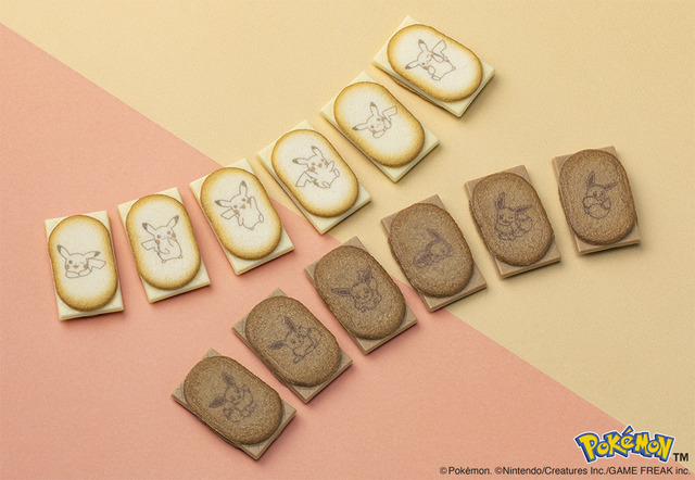 また「はみ出しチョコのクッキーサンド」は、バナナヨーグルト味とキャラメルマキアート味の2つのおいしさをIN。バナナヨーグルトチョコレートをサンドしたクッキーにはピカチュウの絵柄を、キャラメルマキアートチョコレートをサンドしたクッキーにはイーブイの絵柄をそれぞれ描いている。