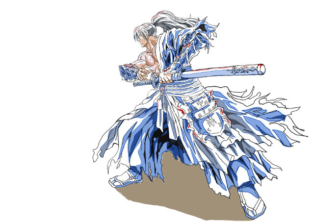 淡輪:クロウというキャラクターには、侍の美学と孤独の両方が宿っているように感じました。『リネージュ』を象徴するエルフの透明感と優雅さに対し、クロウは大地に根差した力強さと、己の刃一本で道を切り拓く覚悟を体現しています。また、彼の内に潜む“鬼”のような衝動と、それを制御する強い意志も大きな魅力です。構図では、その二面性──静けさの中にある緊張、そして内なる炎を感じさせる佇まいを意識しました。