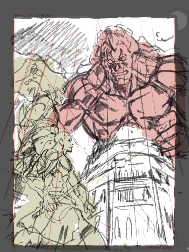 長谷川:キャラクターのデザインを拝見した際に「豪快」「余裕」「精神力」というようなワードを連想しました。荒々しさの中にも揺るぎない信念を持っているキャラクターだと理解して、今回のビジュアルに落とし込ませていただきました。