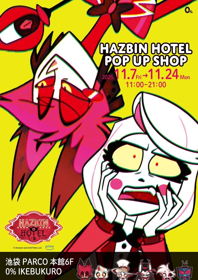 世界中で注目を集める異色のブラックコメディアニメ『ハズビン・ホテルへようこそ』のPOP UP SHOPが、2025年11月7日より東京・池袋PARCO本館6Fの「0%IKEBUKURO」にて開催されることがわかった。シーズン1の印象的なシーンや、ぽってり、ぷにぷにな描き起こしイラストがあしらわれたグッズが登場する。