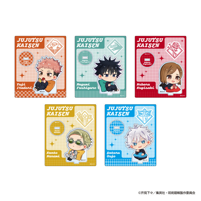 このたびのイオン限定グッズはそんな本作より、虎杖悠仁、伏黒恵、釘崎野薔薇、五条悟、七海建人が「くつろぎタイム」をテーマに描きおこされたイラストを使用したもの。