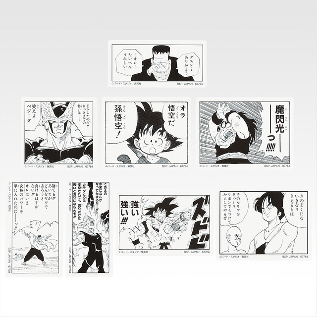 全等級の商品に、鳥山明が描いた「原作イラスト」と「名シーンのコマ」が贅沢にデザインされており、特にI賞の「コマステッカーコレクション」には全42巻から厳選された100種以上の名シーンを収録している。