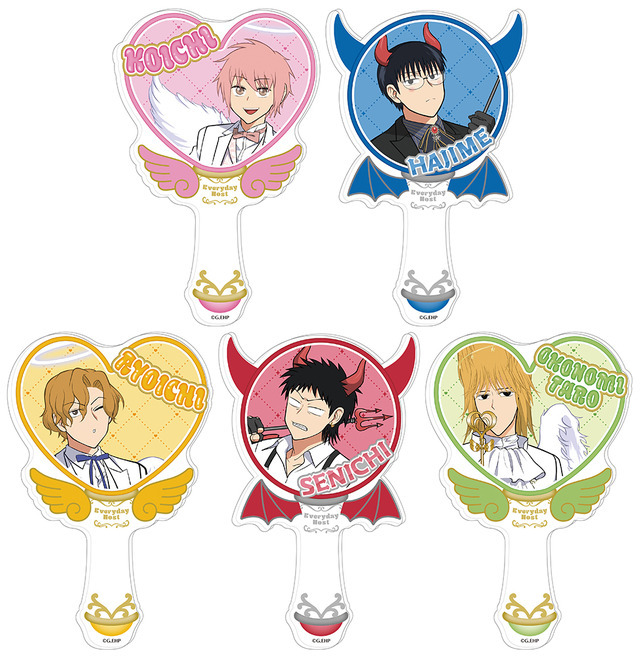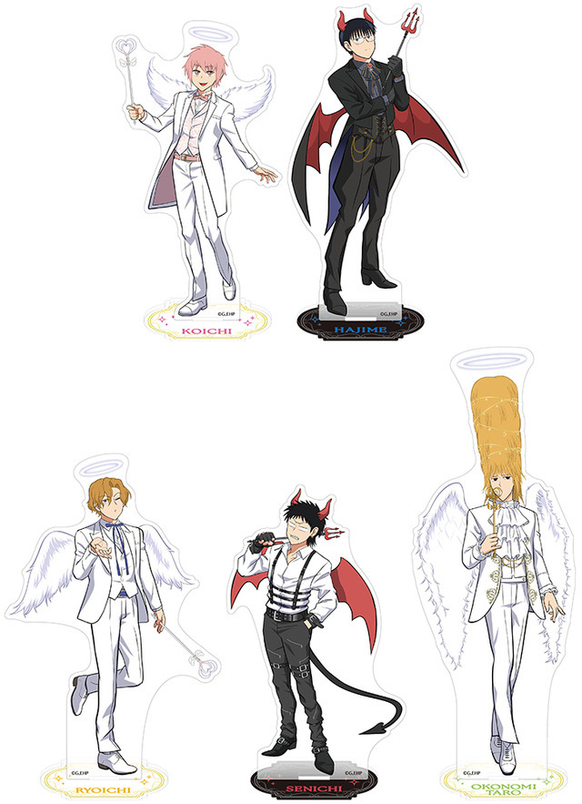 天使や悪魔風の衣装を身につけたコーイチ、ハジメ、リョーイチ、センイチ、おこのみ太郎のイラストを使用したアクリルスタンドやアクリルステッキなどが販売される。また、作品にちなんだシャンパングラスやおこのみ太郎のコードホルダーなど個性的なグッズもラインナップしている。