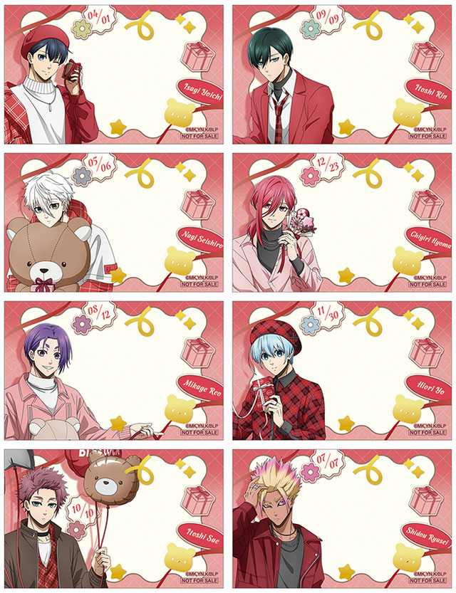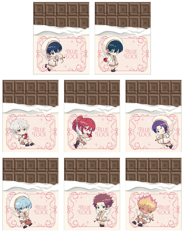 このたびの新作グッズは、そんな本作より潔世一、糸師凛、凪誠士郎、千切豹馬、御影玲王、氷織羊、糸師冴、士道龍聖らの“Sweet Valentine”をテーマにした描き下ろし&描き起こしイラストを用いたもの。