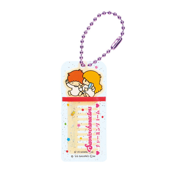 「サンリオキャラクターズ チャーミングコームアクリルチャーム」はケース入りの、持ち手にサンリオキャラクターズを描いた小さなコームのチャームだ。キラキラしたラメのケースと、持ち手部分がキャラクターの顔のダイカット形状になったコームが乙女心をくすぐる。