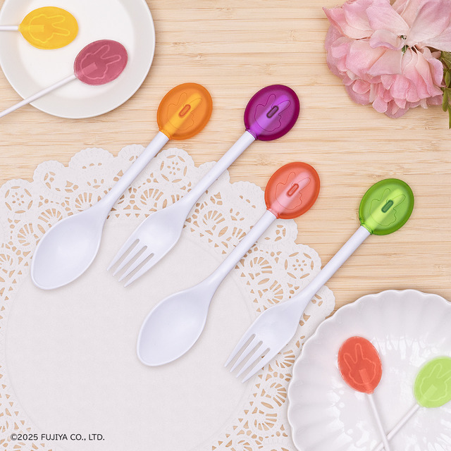 C賞「ペコポコチョコレートミラー」は、ペコポコチョコレートをモチーフにした手鏡。D賞「ポップキャンディカトラリー」は、持ち手が特徴のカトラリーとなっている。