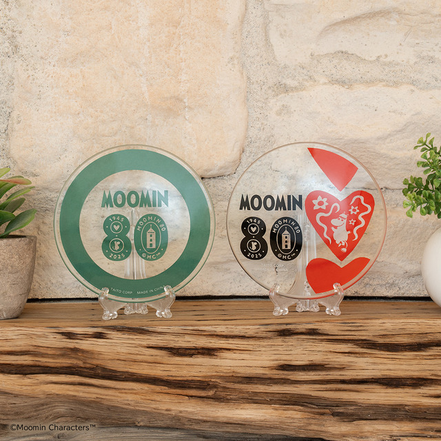C賞には、80周年ロゴがあしらわれたメモリアルプレートがラインナップされた。記念アイテムとして飾れるほか、小物置きとしても使用できるデザインだ。D賞の80周年チャーム付きのマスコットバッジは、「ムーミン」、「リトルミイ」、「スナフキン」、「ニョロニョロ」の4キャラクターから選べる。バッグやポーチに付けて、毎日一緒におでかけを楽しめる。