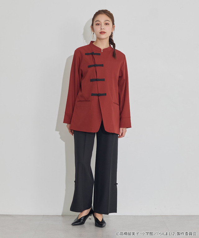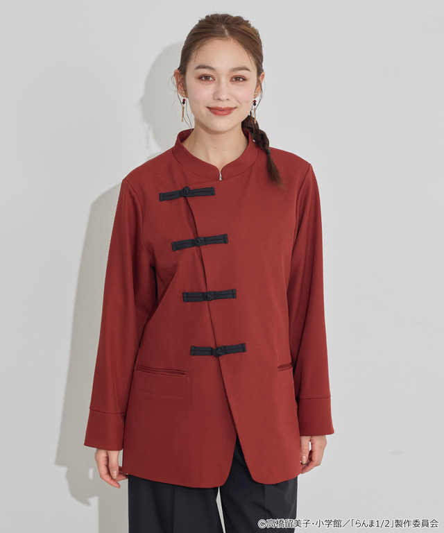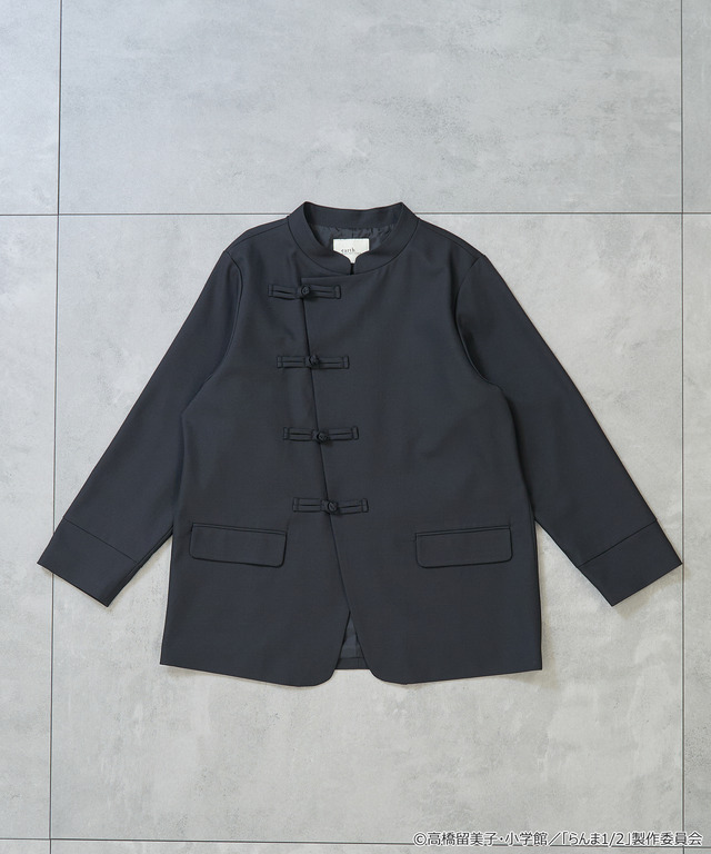 表にチャイナボタン、背面にゴールドで「Ranma1/2」の刺繡が入るアシンメトリーデザインが面白い。生地はジャカードとベロアのような起毛素材を組み合わせ、上品さを演出している。