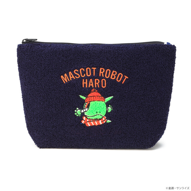 ふっくらとしたサガラ刺繍で立体的に描かれたハロが印象的なポーチ。コンパクトながら収納力があり、小物やアクセサリーをまとめるのにぴったり。