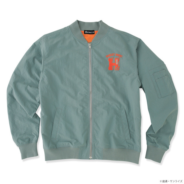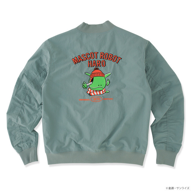「ハロ」をモチーフにしたMA-1ジャケット。フロントに刺繍をあしらい、バックには大きくハロを刺繍でデザイン。
