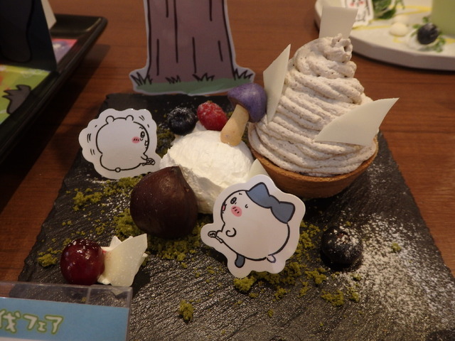 そのほかにも 「ハチワレ討伐成功!ドライカレーオムライス」、デザートでは「マロングラッセの森プレート」「ご機嫌なあのこのパンケーキ」がラインナップ。