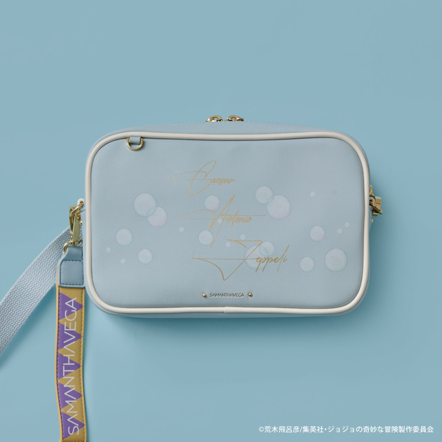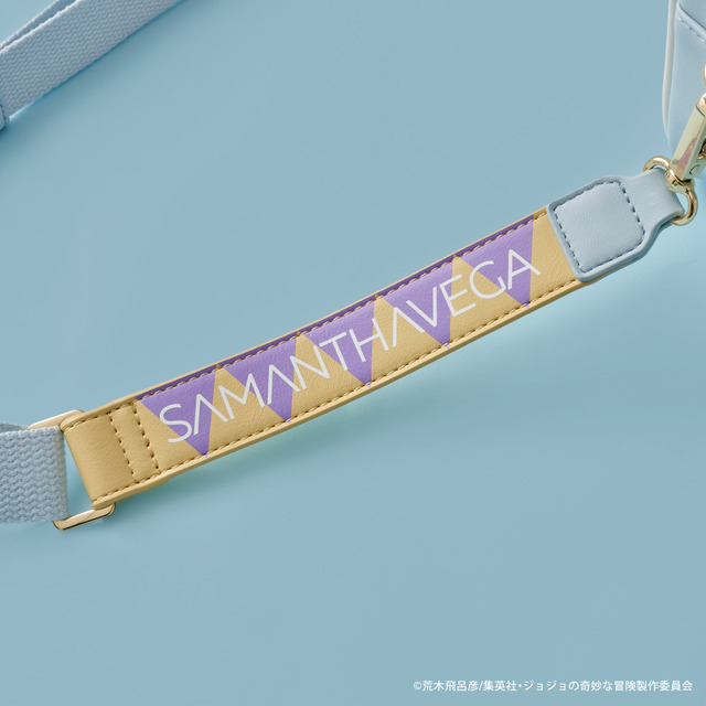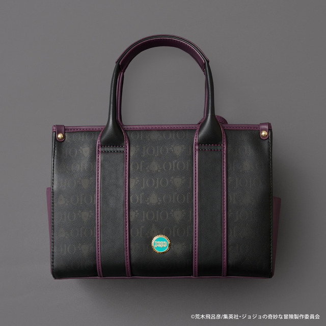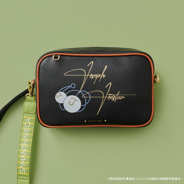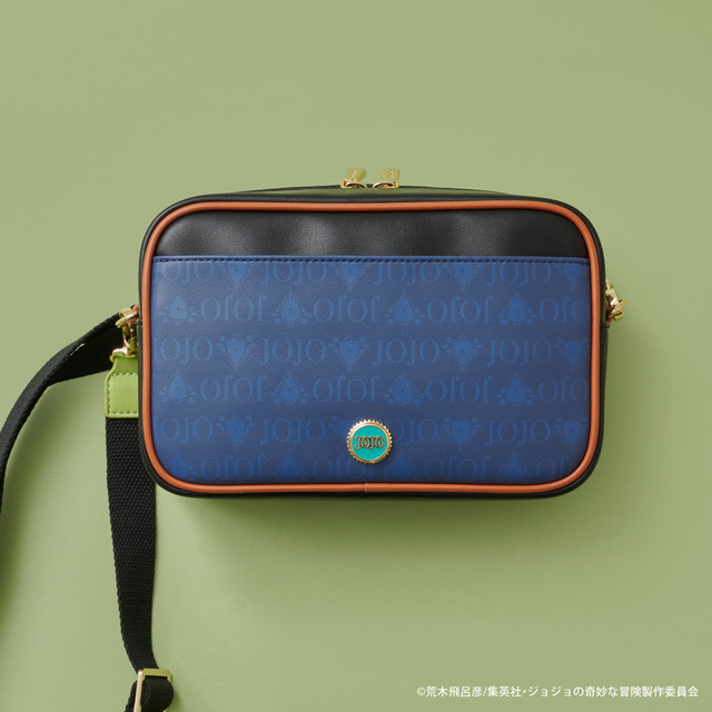 また背面にデザインされた、物語に出てくる瓶の蓋をイメージしたオリジナルの金具がポイント。ショルダー部分は、「ジョセフ・ジョースター」マフラーの柄をイメージしたデザインとなっている。
