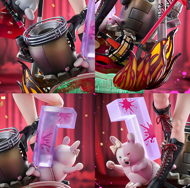 また、歴代おしおきの数々で構成された台座が付属。宇宙旅行からベルサイユ産火あぶり魔女狩り仕立てまで、ダンガンロンパの歴代おしおきを再現した台座が、ダンガンロンパの独特な世界観をいっそう引き立てている。