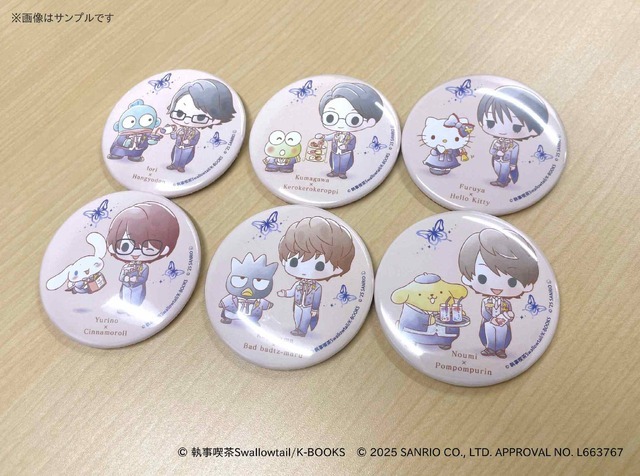 「執事喫茶スワロウテイル」とサンリオキャラクターズがコラボしたグッズが登場。缶バッジ、オリジナルティースプーン、紅茶缶などが用意され、2025年12月10日(水)よりサンリオアニメストア池袋P’PARCO店で店頭販売が、通販サイト「サンリオアニメストアONLINE」で通販がスタートしている。