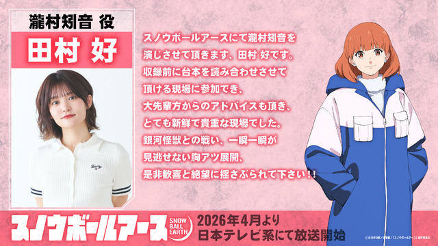 アニメ『スノウボールアース』が2026年4月より日本テレビ系にて放送されることがわかった。さらに、ティザーPV、ティザービジュアル、キャラクタービジュアル、キャスト、追加スタッフ情報なども公開された。