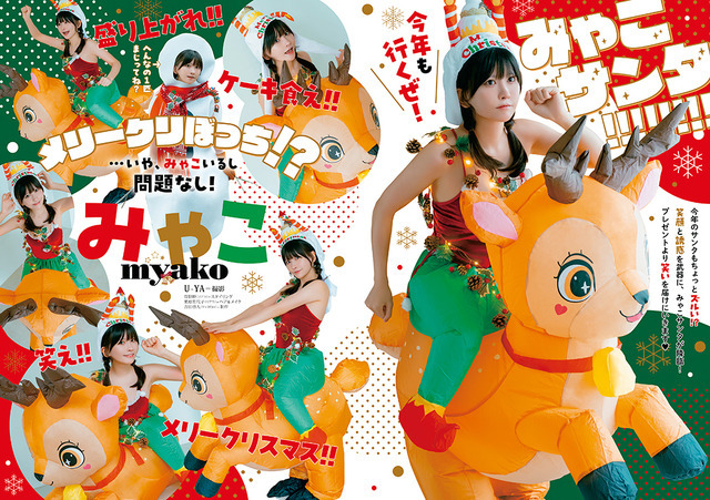 そして巻末には、みゃこのグラビアを掲載。笑顔と誘惑を武器にした“みゃこサンタ”をお見逃しなく。
