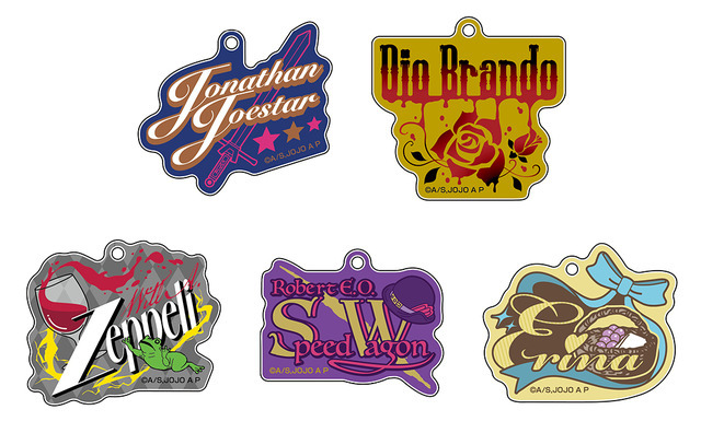 ジョナサンとディオ、ジョセフとシーザーそれぞれがデザインされた「オーロラアクリルスタンド」や「描き下ろし缶バッジセット」。
