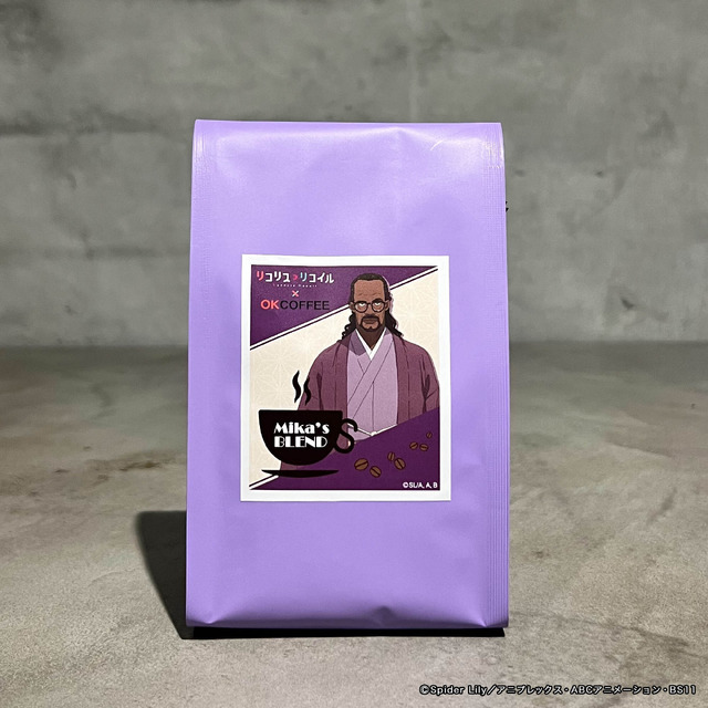 「ミカブレンド」は、喫茶リコリコの店長・ミカをイメージした、深みのあるキリマンジャロベースのブレンド。芳醇なコクと重厚な香りが特徴で、彼の静かな強さと優しさを表現している。