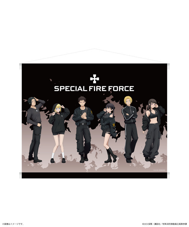 さらに第8特殊消防隊をモチーフにした「バックパック」、モノトーンコーデのアイリス&茉希&環の「ラバーマット」、シンラ&アーサー&紅丸の「スマホ用ミニアクスタセット」、一堂に集う「タペストリー」、各キャラクターごとにアクリルスタンドとアクリルキーホルダー、クリアファイル、缶バッジをまとめた「グッズセット」も用意されている。