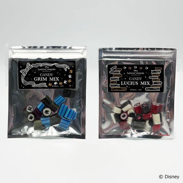 「オイル入りオーナメント」(全7種/3,500円)は、黒いインクが入ったオイル入りオーナメント。「キャンディ」(全2種/1,500円)は、グリムとルチウスのモチーフをデザインしたキャンディで、各3種のフレーバーを楽しめる。