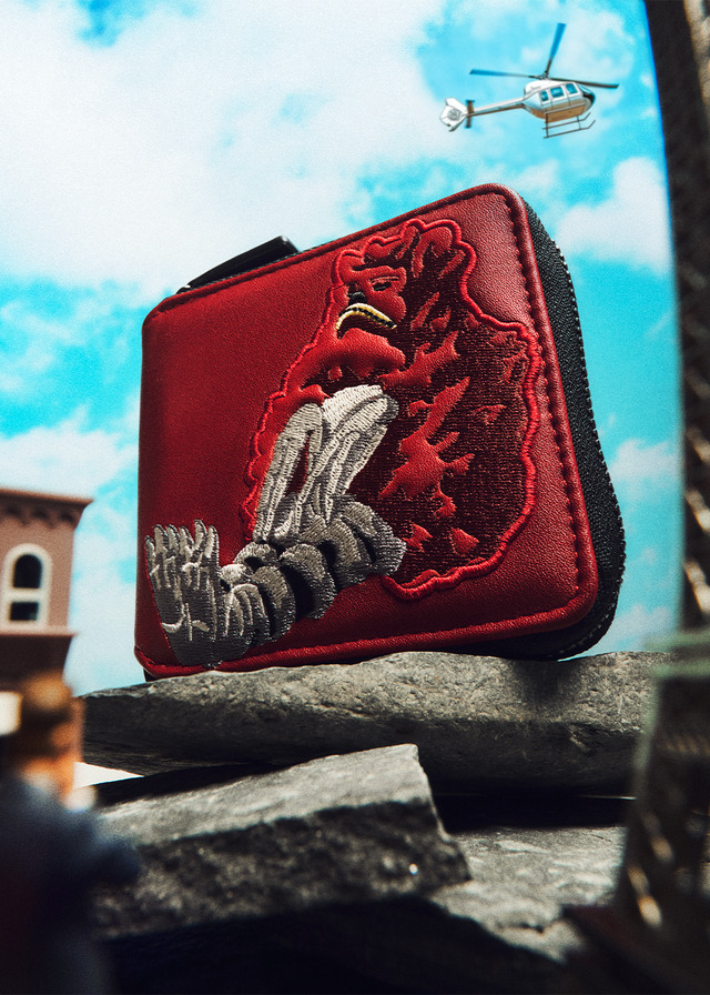 ウルトラ怪獣たちの後ろ姿を刺繍であしらったデザイン。底のファスナーを開けると「ULTRA KAIJU」のロゴが刺繍されており、さりげないアクセントになっている。