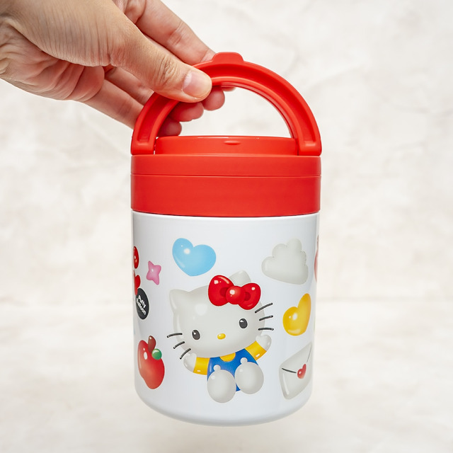 「折りたたみハンドル付き保温・保冷デリカポット」は、風船のようにぷっくりとした質感の3Dアート風デザインが特徴のランチタイムを華やかに彩るアイテム。