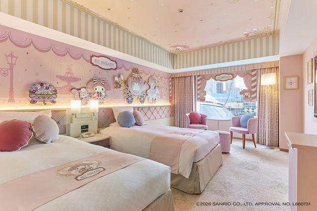 長年にわたり世代を超えて愛され続ける「マイメロディ」と、自称「マイメロディ」のライバルである「クロミ」とのコラボレーション。ここでしか見ることのできないホテル限定描き下ろしデザインの客室と、新たに登場するデザートプレートで、想い出に残る素敵なひとときを過ごそう。