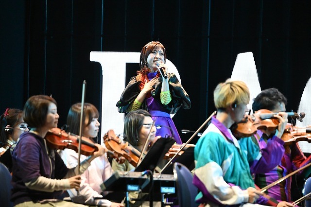 さらに、ダブルアンコールでは林原めぐみが登場した。幻想的な演出の中、「翼をください」と「VOYAGER~名前のない墓標~」を披露する。情感豊かなピアノ伴奏と共に、祈りにも似たその歌声が横浜アリーナ全体を優しく包み込んだ。そして曲の終わりで、今度は林原が指揮棒を託され、その指揮棒を大きく振り下ろして楽曲を締めくくる。30年間の歩みを噛み締めるような感動的なフィナーレを迎えた。