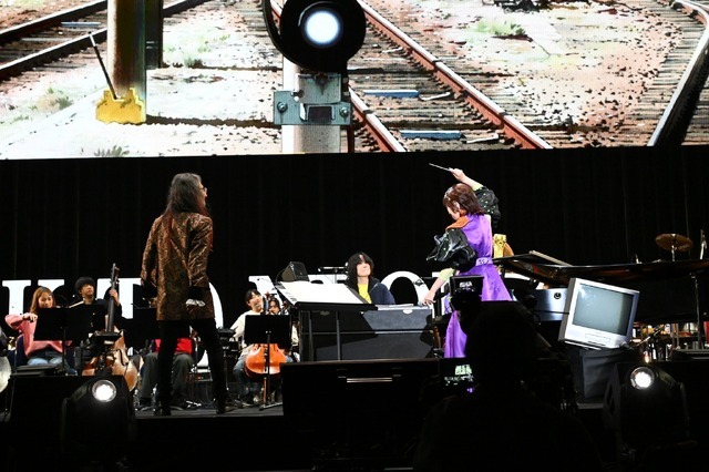 その後は、本作の音楽を象徴する鷺巣詩郎が指揮者として登壇する。『新世紀エヴァンゲリオン』のオリジナル録音メンバーであり、鷺巣とは数十年来の仕事仲間でもある渡嘉敷祐一(ドラムス)、岡沢章(ベース)、芳野藤丸(ギター)、エリック・ミヤシロ(トランペット・リーダー)をはじめ、9年公開の劇場版から録音に参加している中西康晴(ピアノ)、斉藤ノヴ(パーカッション)、小池修(サックス)らを中心に編成された「The Studio Legends Orchestra」のメンバーたちの演奏が繰り広げられた。