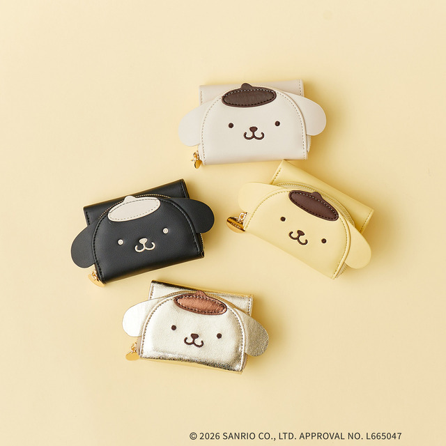 「三つ折りウォレット」はポムポムプリンのかわいいお顔がデザインされたミニウォレット。ミニバッグを持つ際にもぴったりな、コンパクトサイズだ。