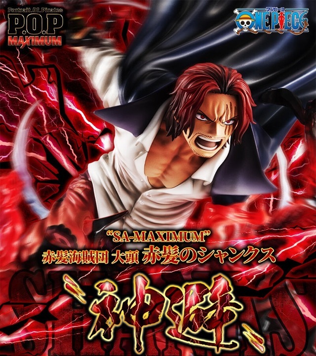 TVアニメ『ONE PIECE』からは、赤髪のシャンクスが登場する。「Portrait.Of.Pirates ワンピース “SA-MAXIMUM” 赤髪海賊団 大頭 赤髪のシャンクス “神避”」は、シャンクスが神避を放つ場面がモチーフ。ユースタス・キッドを電磁砲ごと一撃で切り伏せた迫力をそのままに、雄々しい表情や躍動感あふれる造形で立体化した。