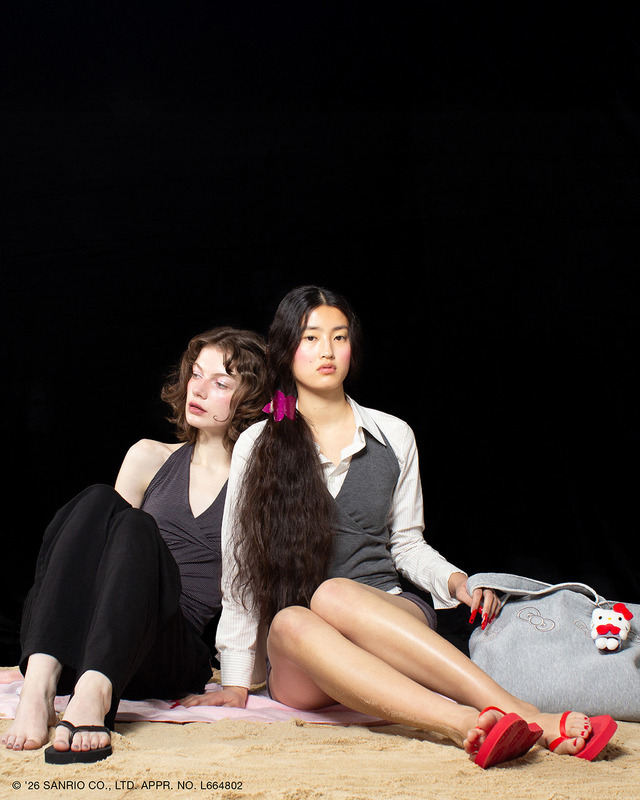 「ビーチサンダル」は、シンプルなデザインながら、見えないところに遊び心を忍ばせたビーチサンダル。ソール裏にハローキティの愛らしいフェイスモチーフをあしらい、砂浜ややわらかな地面を歩くたびに、ぽんっとハローキティの足あとが浮かび上がり、履くたびに笑顔になれる特別な一足。シックなブラックと色鮮やかなレッドの2色をラインアップし、リゾートシーンからタウンユースまで活躍する万能なアイテムとなっている。