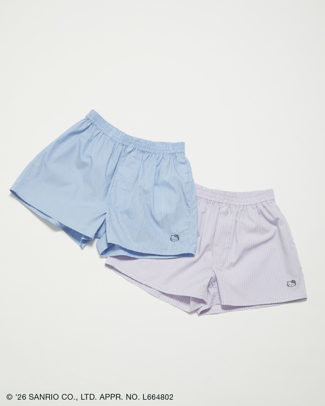「ボクサーショーツ」は、シンプルなデザインのボクサーパンツに、ハローキティの刺繍をさりげなくあしらったストライプ柄のショーツ。デニムやスラックスなどのインナーとしてプラスワンすることで、トレンド感溢れる着こなしへと導くアイテムだ。ルームウェアとして着用も可能。